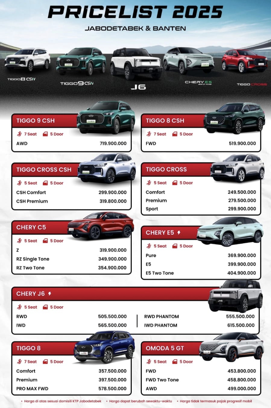 Dapatkan Penawaran Kendaraan di CHERY JABODETABEK khusus di bulan ini, Dapatkan penawaran kendaraan CHERY di Dealer Kami.